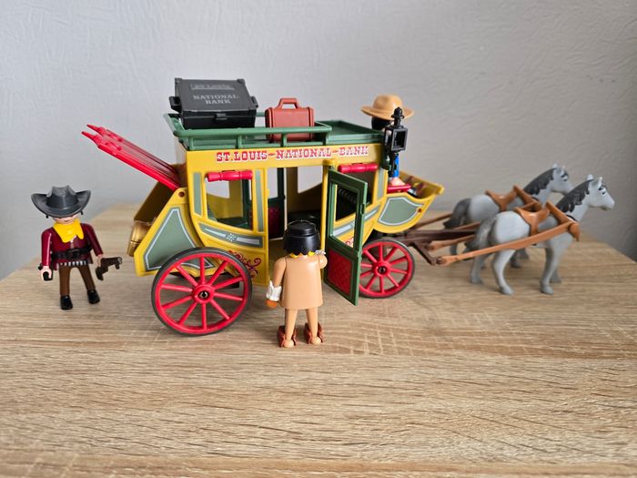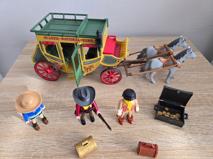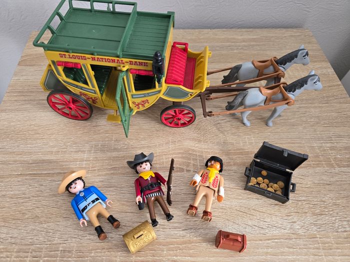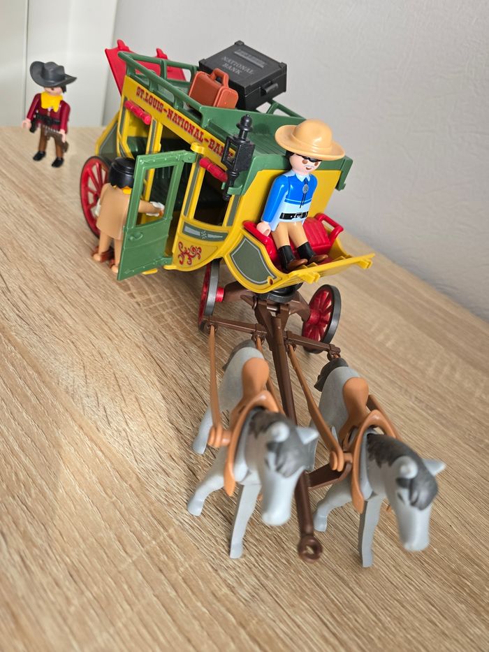 Diligence far west en très bon état. Il manque une petite lanterne sur le côté de la diligence. Vendu sans la boîte.