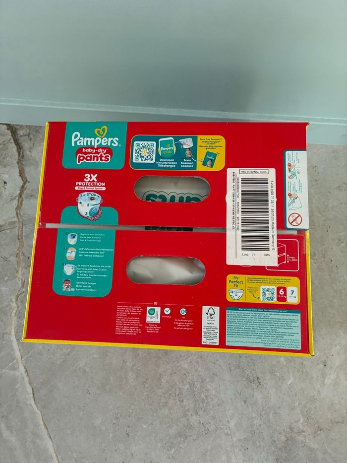 Pack de couches non ouvert, taille 6. Le pack contient 74 couches culottes.