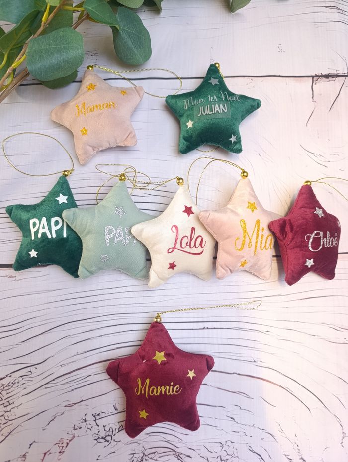 Etoile de Noël à suspendre 5 coloris au choix Texte ou prénom, plusieurs couleurs d'écriture possibles
