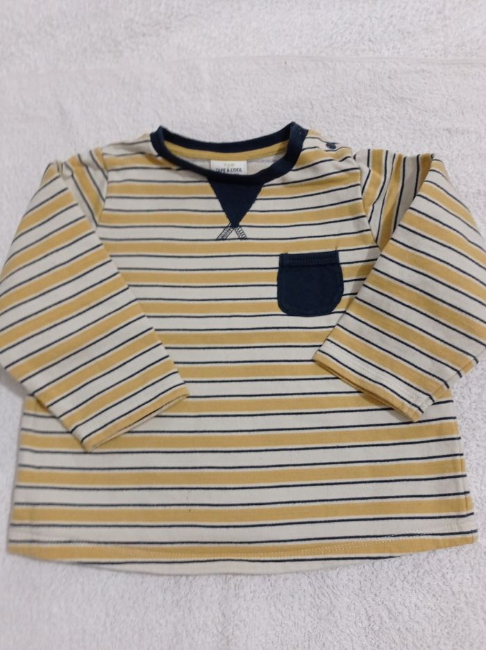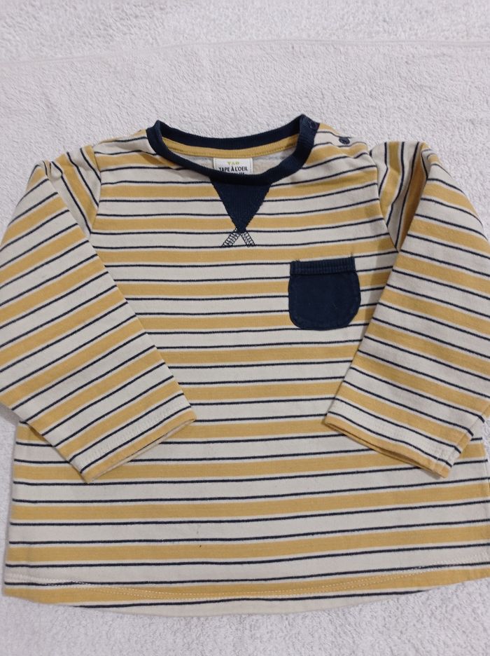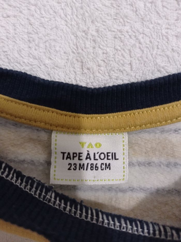 Polo manches longues marque tape à l'oeil 23 mois 86 cm et crème moutarde et rayures bleu petite poche sur les côtés - photo numéro 1