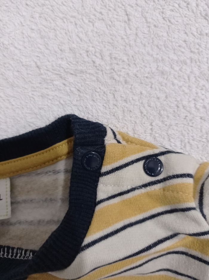 Polo manches longues marque tape à l'oeil 23 mois 86 cm et crème moutarde et rayures bleu petite poche sur les côtés - photo numéro 2