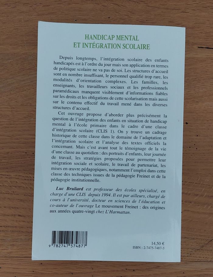 Handicap mental et intégration scolaire L'harmattan / Luc Bruliard / savoir et formation Très bon état