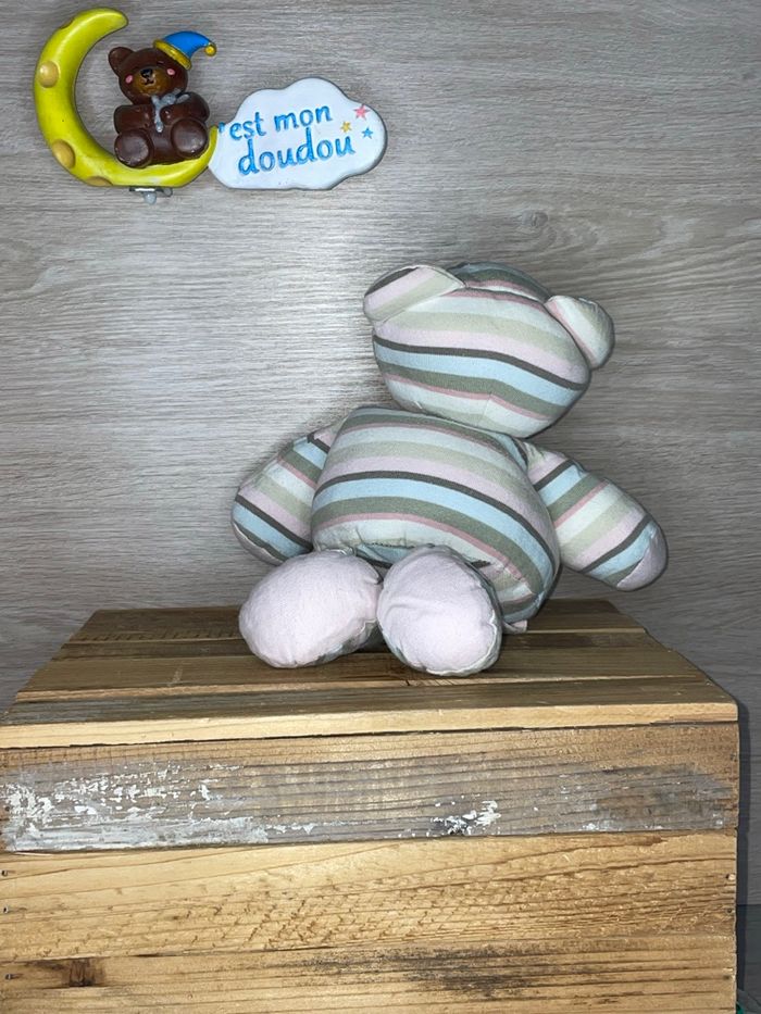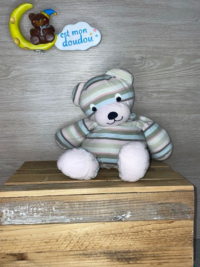 🌺 Bonjour, vendeuse professionnelle 🌺 Je vous propose le Doudou suivant : Marque : H&M Genre : ours rayé rose, kaki Format : 30cm État d’occasion : bon état général Stock : 1 RÉFÉRENCE : HM36 ➡️ Pour plus de modèles de cette marque, cliquez ici : #hetm_cestmondoudou ⭐️ La décoration (boîte...) n'est pas vendu avec le doudou ⭐️