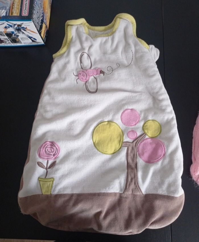 Lot 5 turbulettes sans manche, bon état. 2 nid d'ange. Tien chaud. Divers Marques vert baudet, prémaman, Kiabi.. La dernière turbulette en bleu est taille en 0/6mois