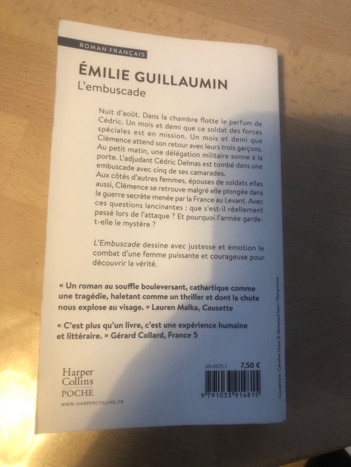 " "Veuve de guerre" : l'expression était d'une laideur archaïque non dépourvue de noblesse... " Nuit d'août. Dans la chambre flotte le parfum de Cédric. Un mois et demi que ce soldat des forces spéciales est en mission et que Clémence attend son retour avec leurs trois garçons. Au petit matin, une délégation militaire sonne à la porte. L'adjudant Cédric Delmas est tombé dans une embuscade avec cinq de ses camarades. Aux côtés d'autres femmes, épouses de soldats elles aussi, Clémence se retrouve malgré elle plongée dans la guerre secrète menée par la France au Levant. Avec ces questions lancinantes : que s'est-il réellement passé lors de l'attaque ? Et pourquoi l'armée garde-t-elle le mystère ? L'Embuscade dessine avec justesse et émotion le combat d'une femme puissante et courageuse pour découvrir la vérité.