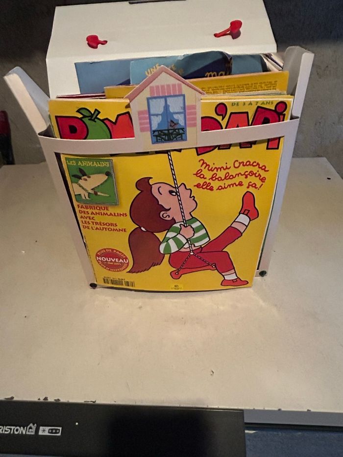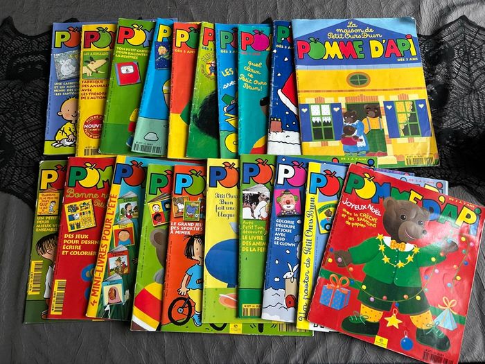 lot de revues "Pomme d'Api" avec une boîte de rangement assortie, en très bon état.
