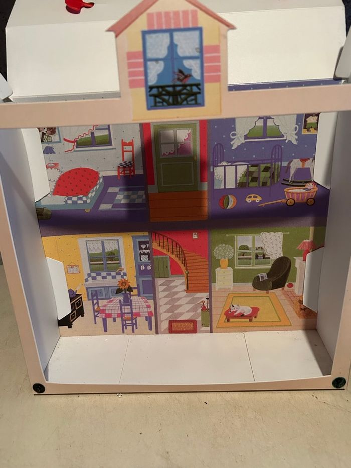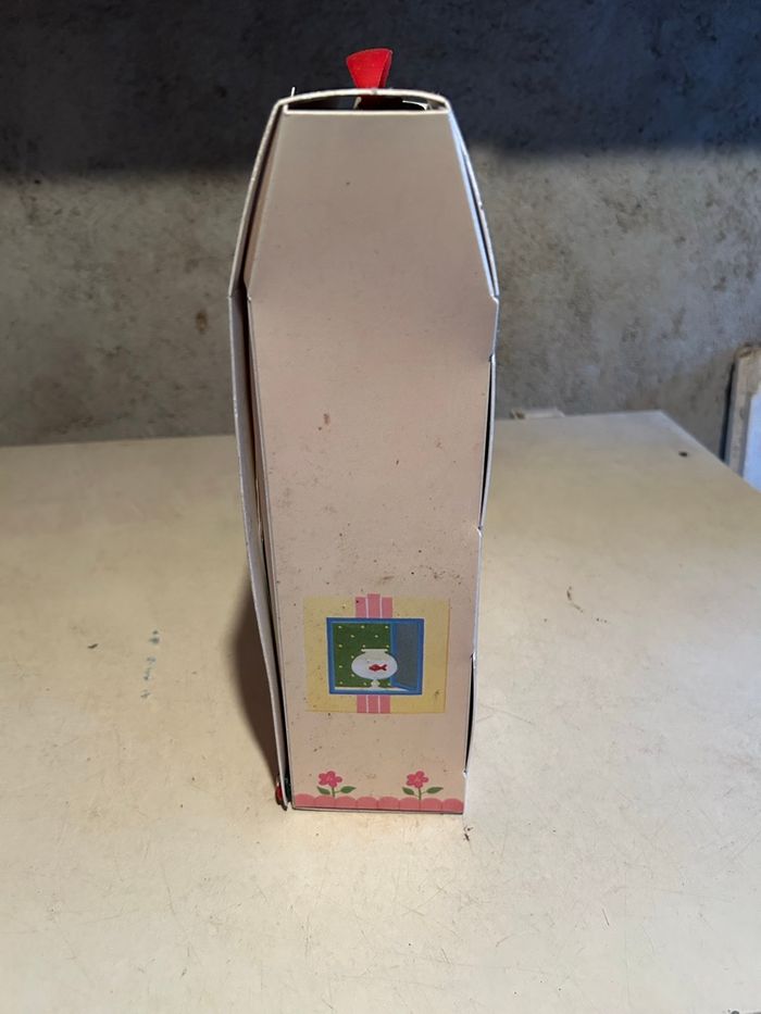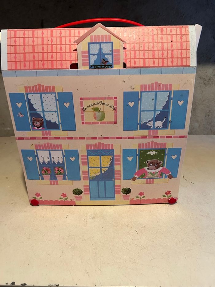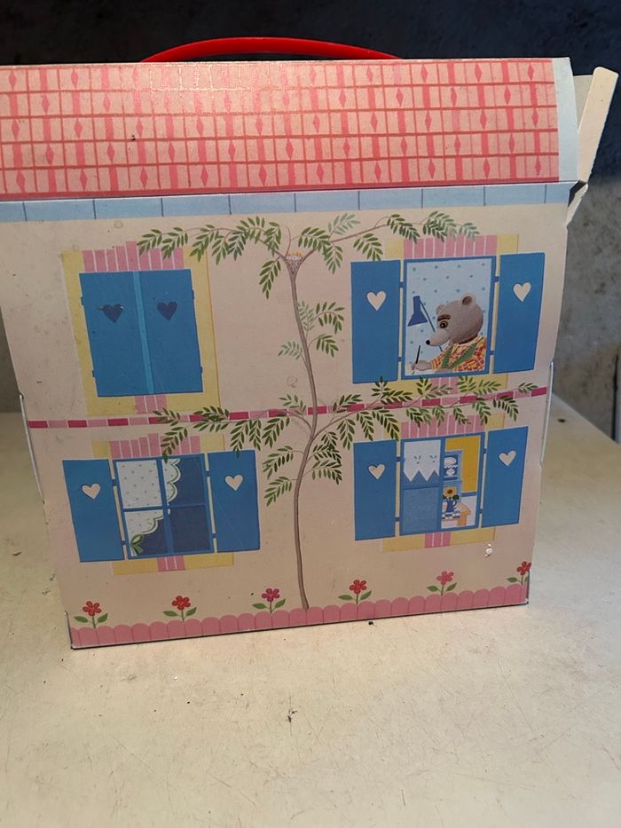 - la boîte de rangement est en plastique en forme de maison. 2 boutons de pression pour la fermer.
