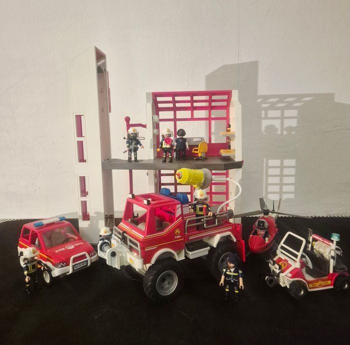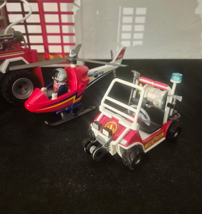Caserne de pompiers 5361 - Elle est en très bon état et la sirène fonctionne. Camion de pompiers 9466 - en très bon état. Tout fonctionne (sirène et gyrophare) Hélicoptère 2 véhicules