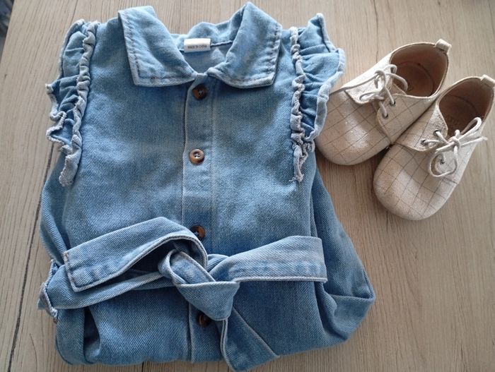 Combinaison en jeans 9 - 12 mois. Avec chaussures brillantes Zara.