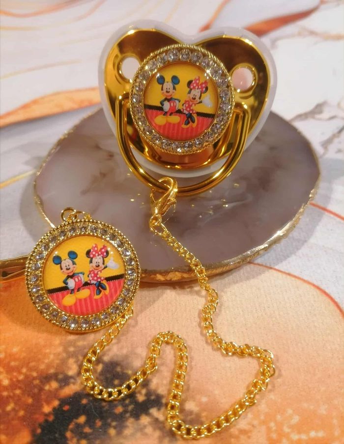 Sucette strass avec attache Couleur OR Protection inclus Sucette 100% Silicone, Sans BPA. Sucette orthodontique, taille unique. Neuf emballé