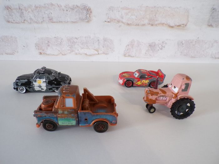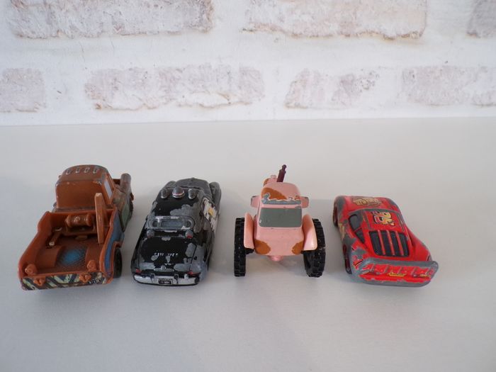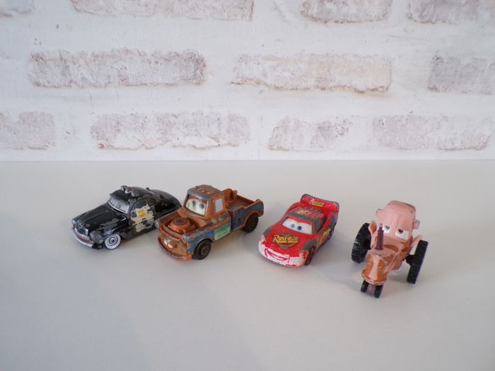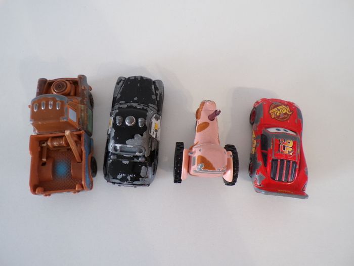 Voitures Cars - Martin - Shérif - Flash Mc Queen - Resteq (bon état, éclats de peinture), les autres véhicules sont en état satisfaisant.
