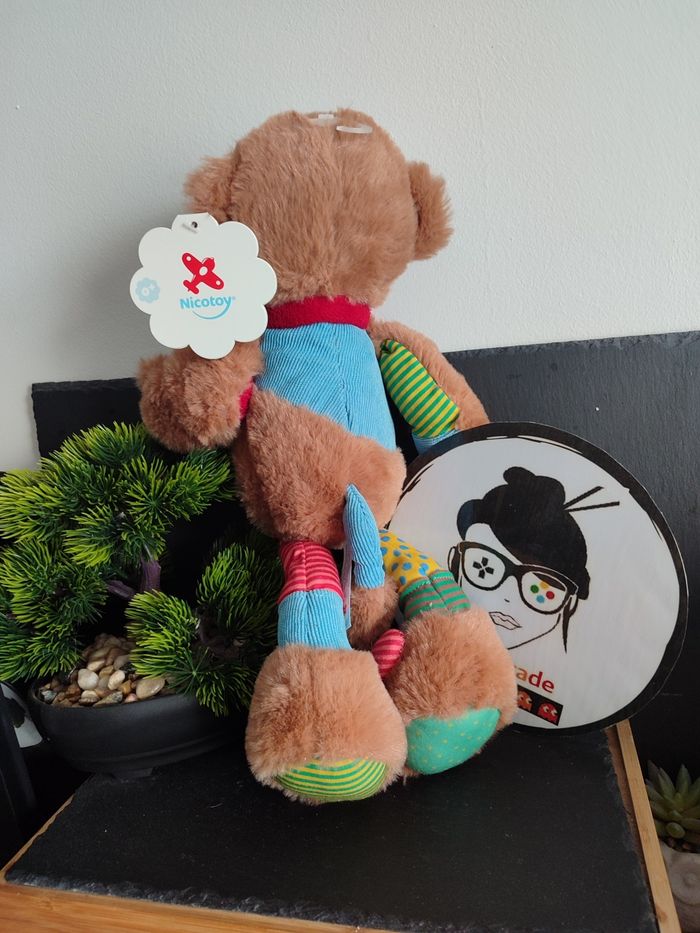 Nicotoy Long legs Patchwork Peluche singe marron bleu rouge 40 cm Pois Rayé 197 - photo numéro 1