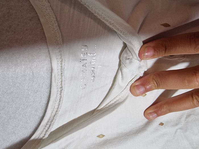 Débardeur femme Camaïeu essentiel blanc avec losanges bruns taille S. En très bon état. Envoi rapide. Négociable.