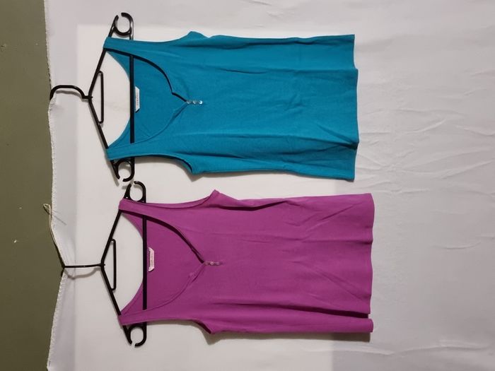 Lot 2 débardeurs femme Camaïeu taille S comprenant : - 1 bleu clair - 1 fuchsia En très bon état. Envoi rapide. Négociable.