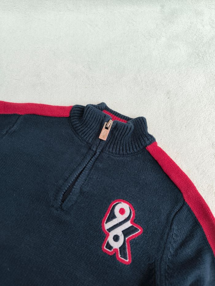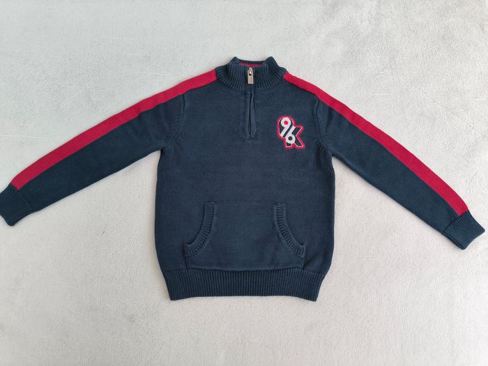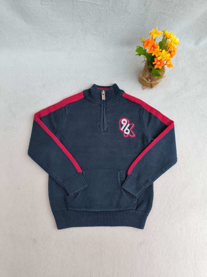 Pull à manches longues Marque Okaïdi Taille 3 ans, 98 cm • Coloris marine, rouge • Broderie "96, OK" • Fermeture éclair au col • Poche ventrale, kangourou • Mailles • Coton Également disponible en gris Peu porté, en très bon état #evelyne_garcons_3ans #evelyne_garcons