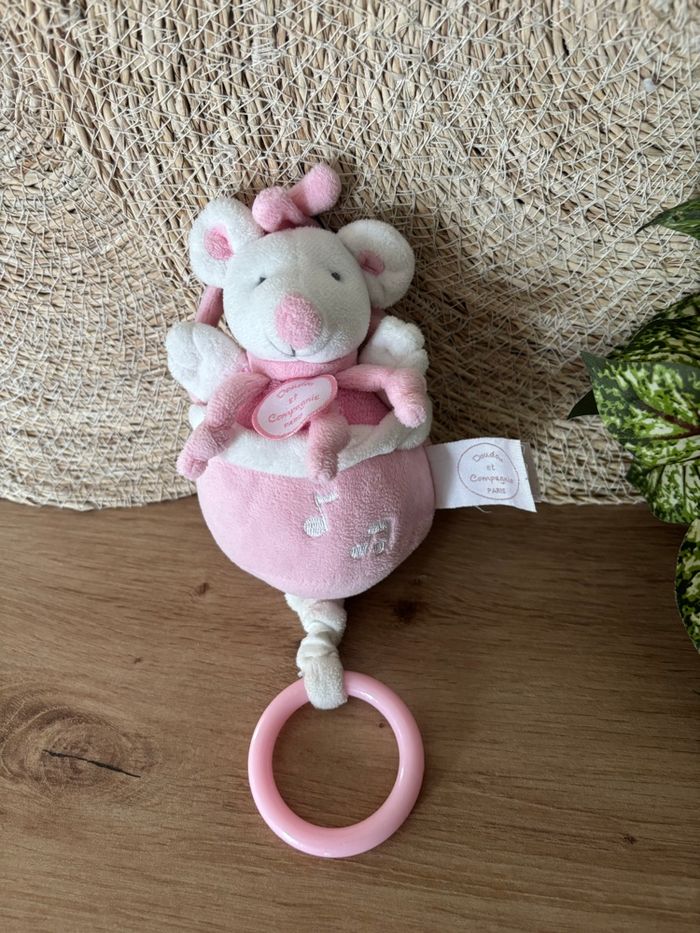 Doudou boîte à musique souris rose blanc doudou et compagnie - photo numéro 1