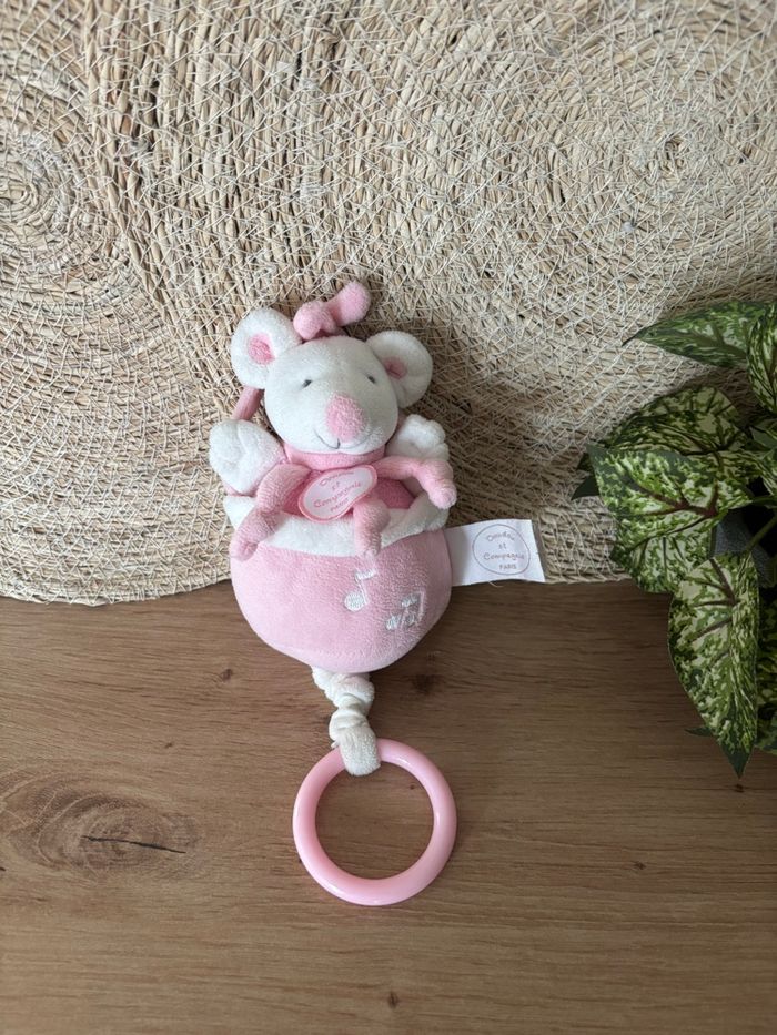 Doudou boîte à musique souris rose blanc doudou et compagnie