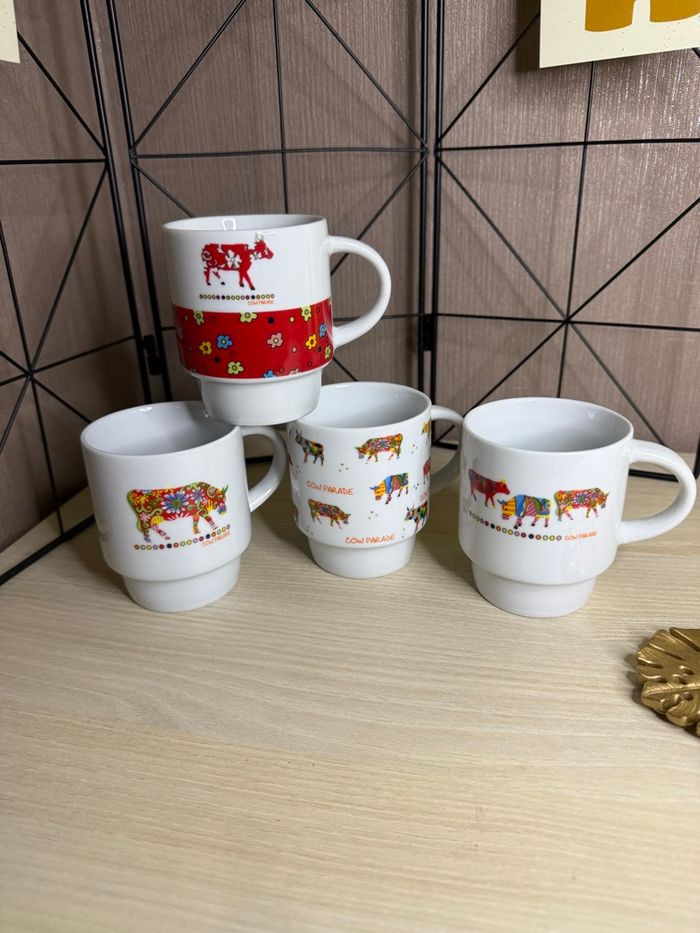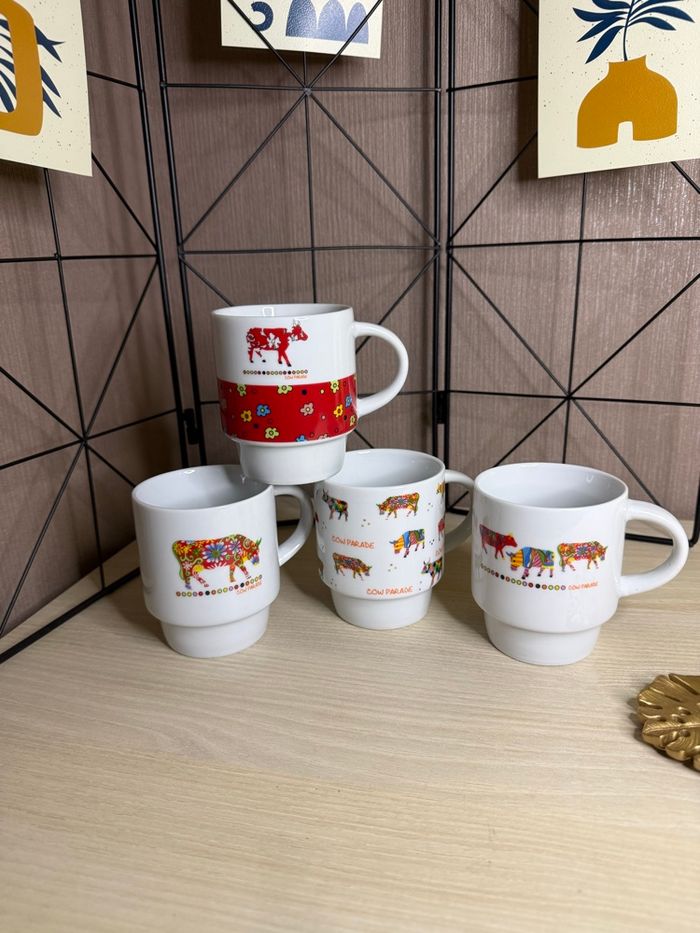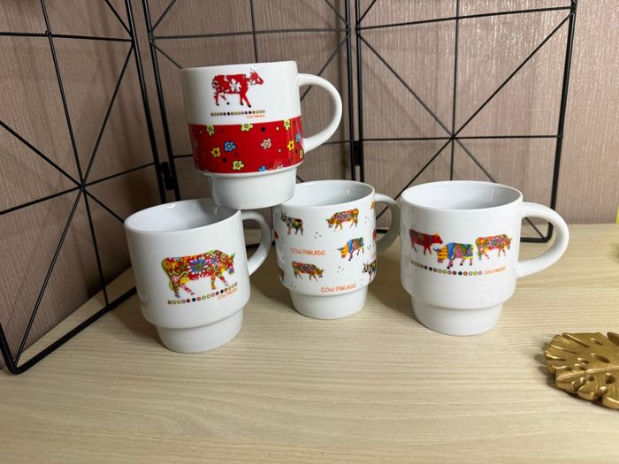 Lot de 4 tasses motifs vache Marque :Cow Parade collection Hauteur : 8,5 cm Diamètre : 7 cm