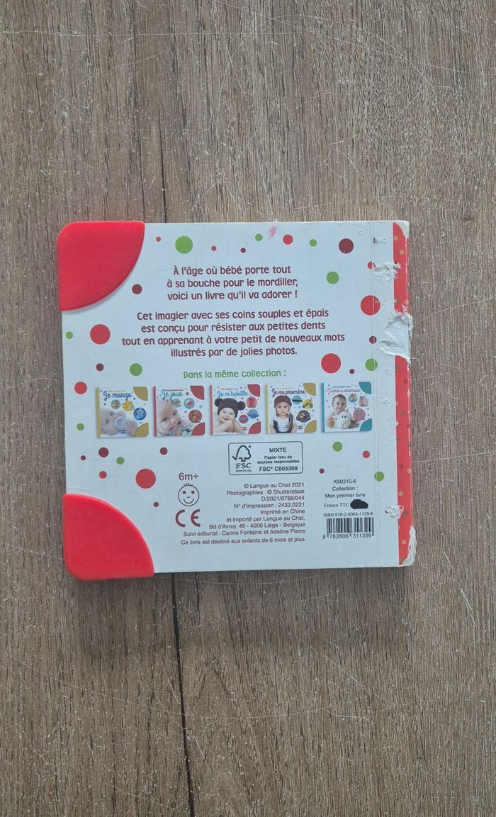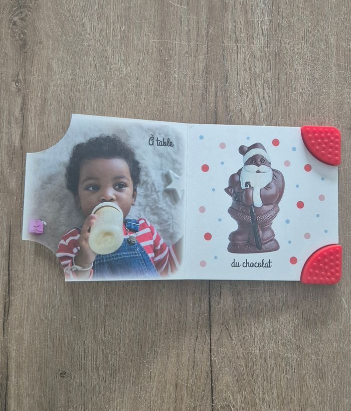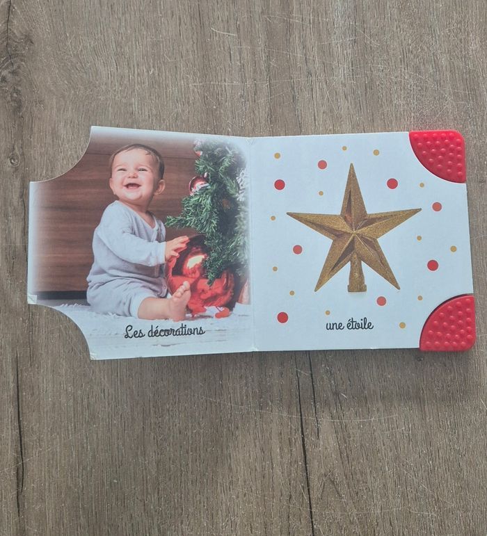 Mon premier livre : Je fête Noël Imagier avec de vraies photos Coins du livre en silicone texturé pour les gencives de bébé Langue au Chat Livre en très bon état mais couverture abîmée (voir dernière photo)