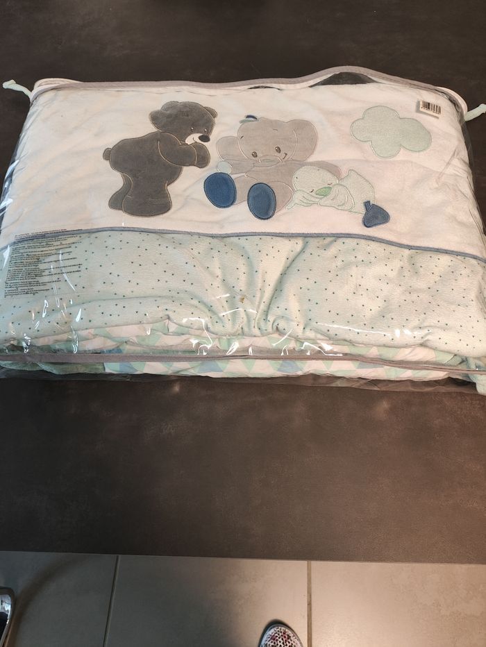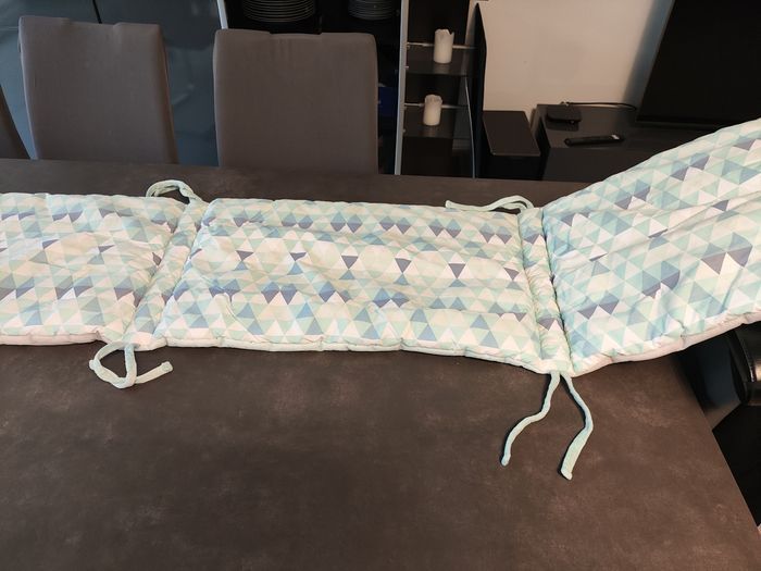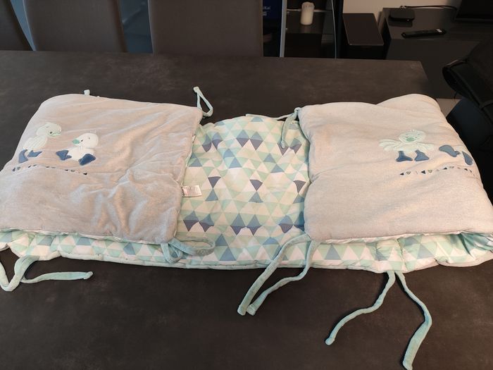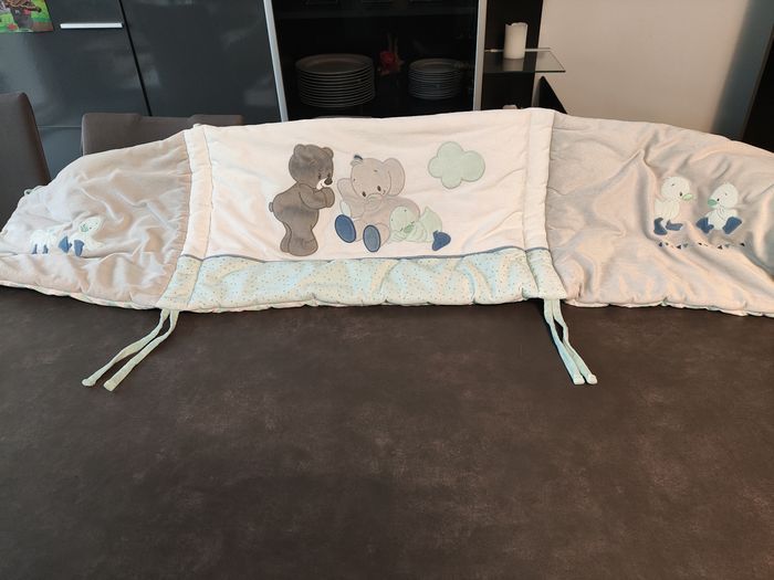 Tour de lit à barreaux pour bébé de la marque Nattou, modèle Jack, Jules & Nestor. Convient à tous les lits de 60 à 70 cm de largeur. Fixations par liens à nouer, très facile à installer Très bon état, propre et bien entretenu