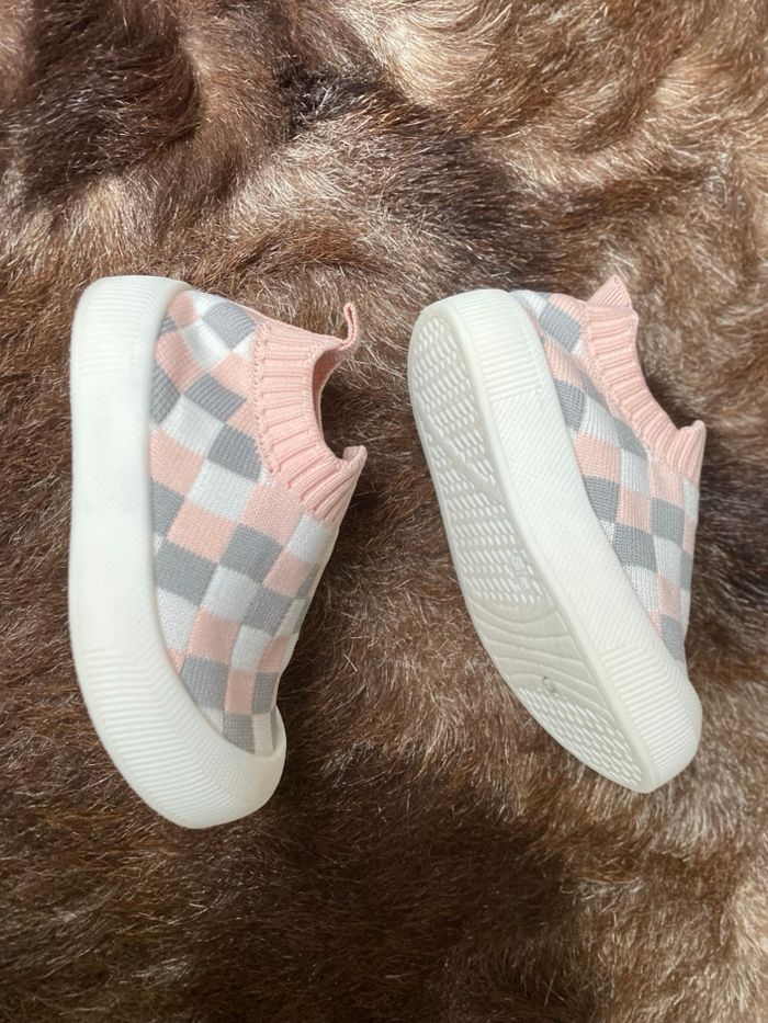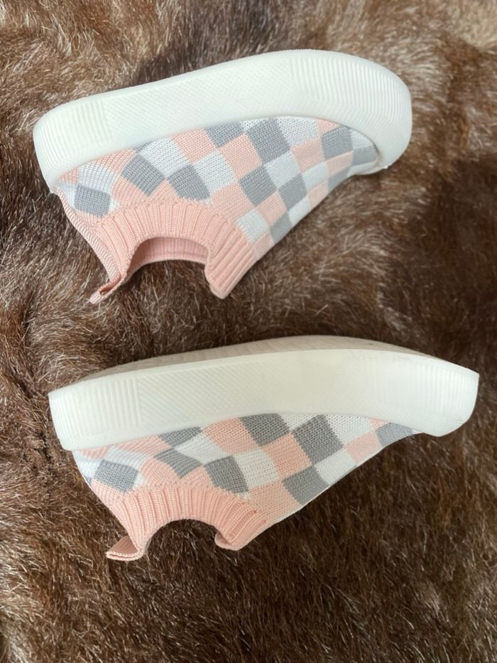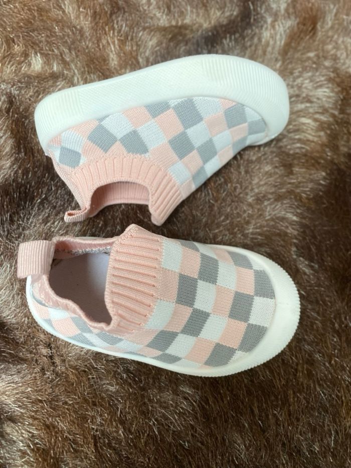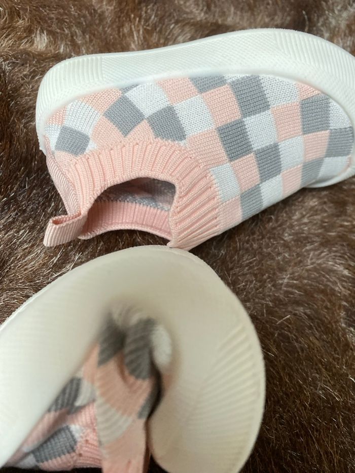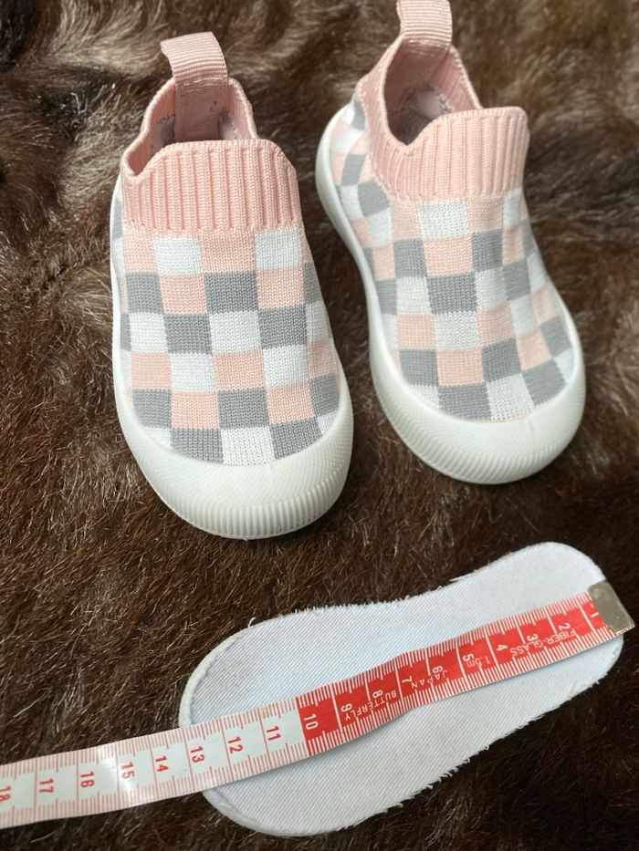 FANSU Chaussures Bebe Souple à enfiler en très bon état, damier blanc gris rose Confort Premiers Pas Bébé Fille Respirant Semelles Antidérapantes La semelle intérieure mesure 13 cm, correspond à une pointure 20/21