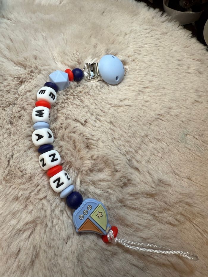 Pour passer commande il suffit de valider le paiement sur l’annonce du modèle désiré et de m’envoyez le prénom de l’enfant par message que je puisse réaliser votre commande A partir de 2 articles vous bénéficiez de 5% de réduction 🥰 Réalisation dans la journée et envoie dès le lendemain Attention l’adaptateur tétine mam et en supplément à 1€ Une petite photo du modèle terminé et toujours envoyez que vous puissiez vérifier ☺️