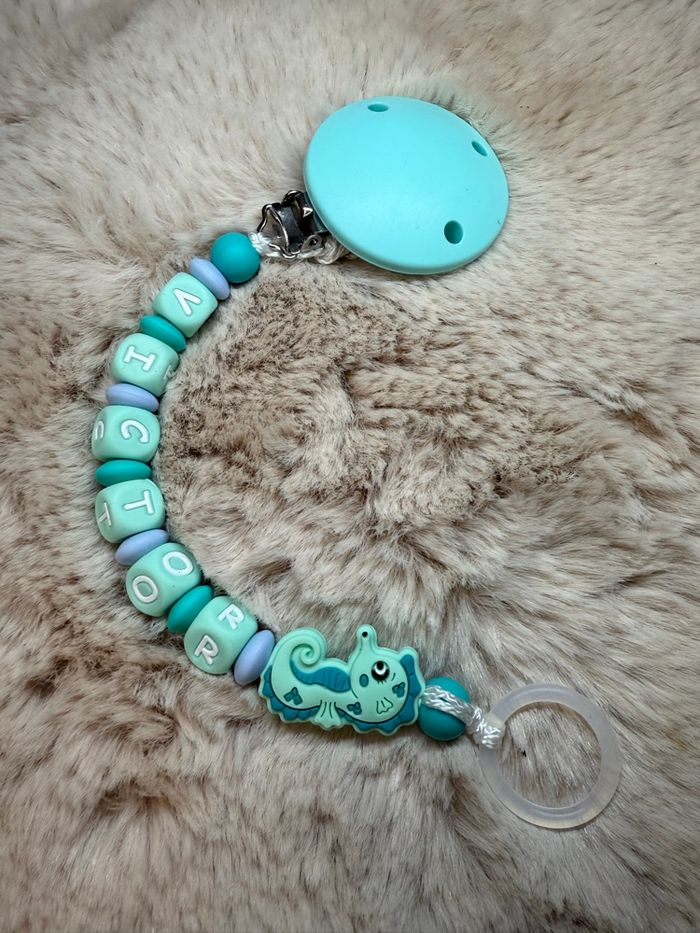 Pour passer commande il suffit de valider le paiement sur l’annonce du modèle désiré et de m’envoyez le prénom de l’enfant par message que je puisse réaliser votre commande A partir de 2 articles vous bénéficiez de 5% de réduction 🥰 Réalisation dans la journée et envoie dès le lendemain Attention l’adaptateur tétine mam et en supplément à 1€ Une petite photo du modèle terminé et toujours envoyez que vous puissiez vérifier ☺️