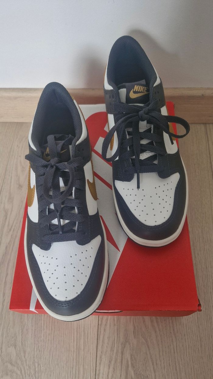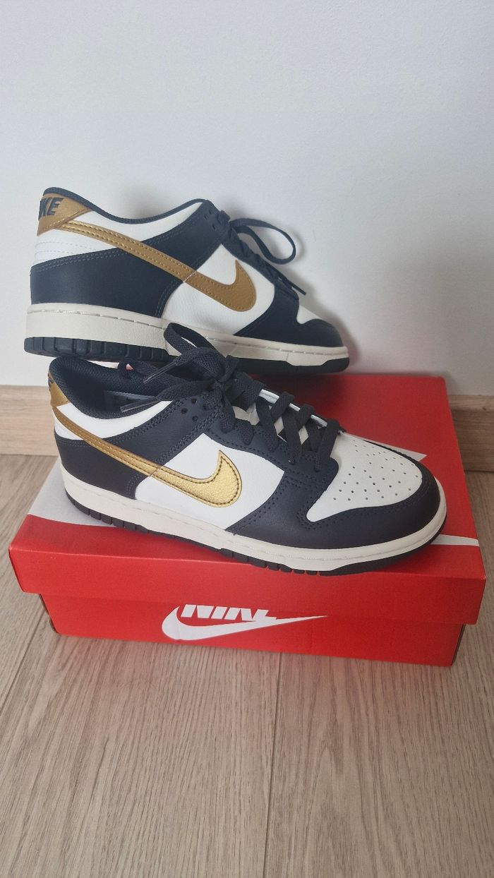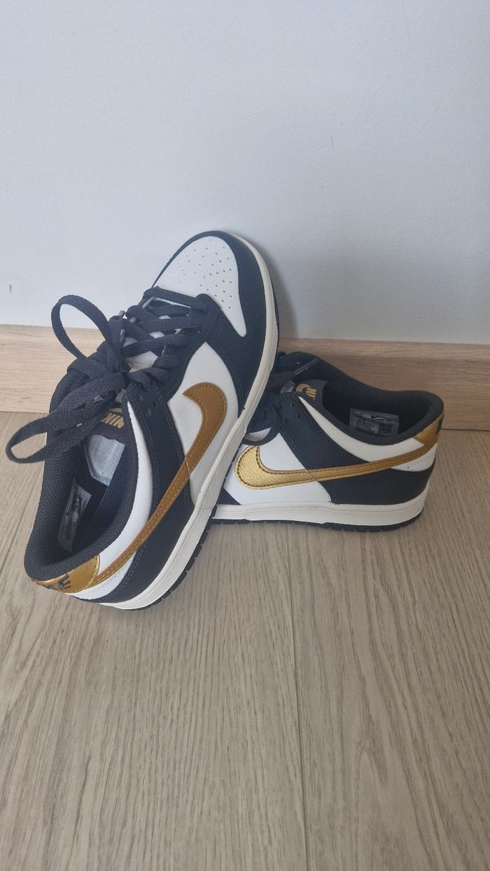 Baskets Nike Dunk Low noires et dorées mixtes neuves. Jamais portées. Pointure 38.5 👟 Élégance et style urbain réunis dans une seule basket ! La Nike Dunk Low « Black & Gold » allie un look sophistiqué à une touche sportive, parfaite pour celles qui souhaitent se démarquer avec classe. Le Swoosh noir, blanc et or contrasté crée un effet luxueux et polyvalent, idéal pour toutes les tenues. ✨ Principales caractéristiques : ✅ Matériaux haut de gamme : Tige en cuir lisse noir et blanc pour un look épuré et durable. ✅ Swoosh doré en cuir foulonné : une touche de luxe qui ne passera pas inaperçue. ✅ Confort imbattable : Semelle intermédiaire en mousse pour un amorti léger et réactif. ✅ Semelle extérieure en caoutchouc durable : Adhérence et adhérence optimales sur toutes les surfaces. ✅ Design emblématique : Le style de la Dunk Low est un classique intemporel qui ne se démode jamais.