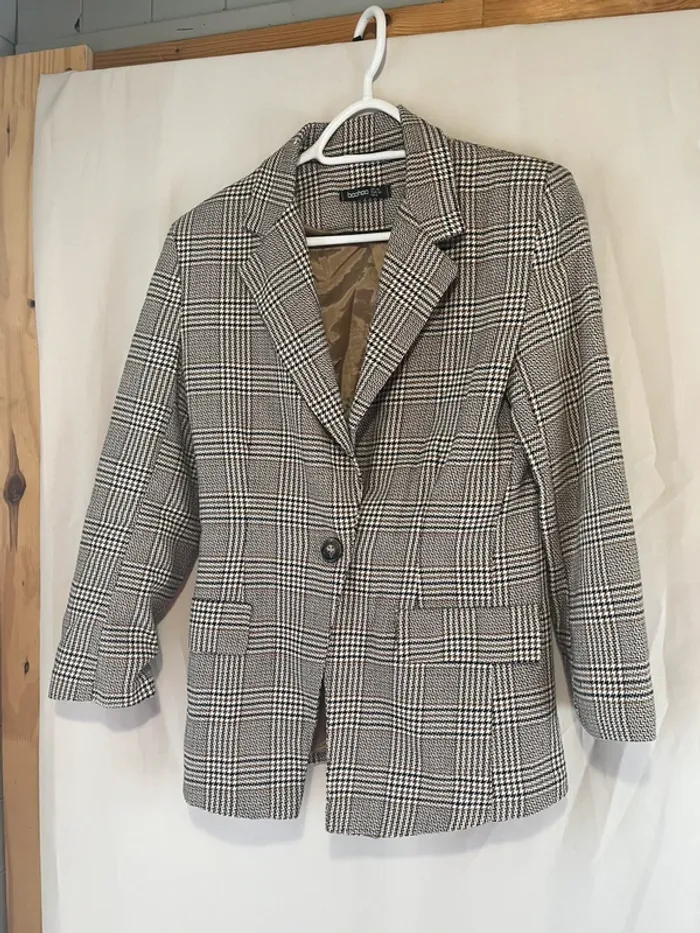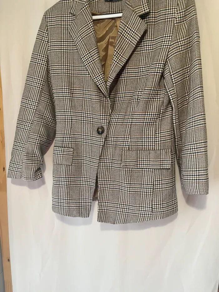 Veste à carreaux Grise et beige Taille 38