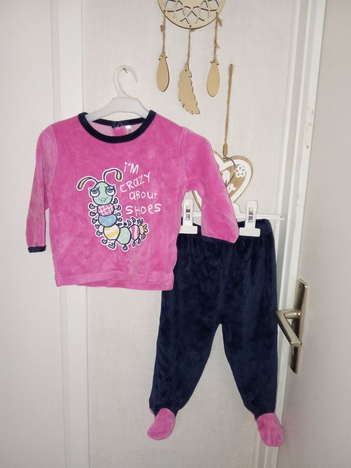 Pyjama bébé fille,  2 pièce velour, hiver en 12 mois marine, rose, motif - photo numéro 1