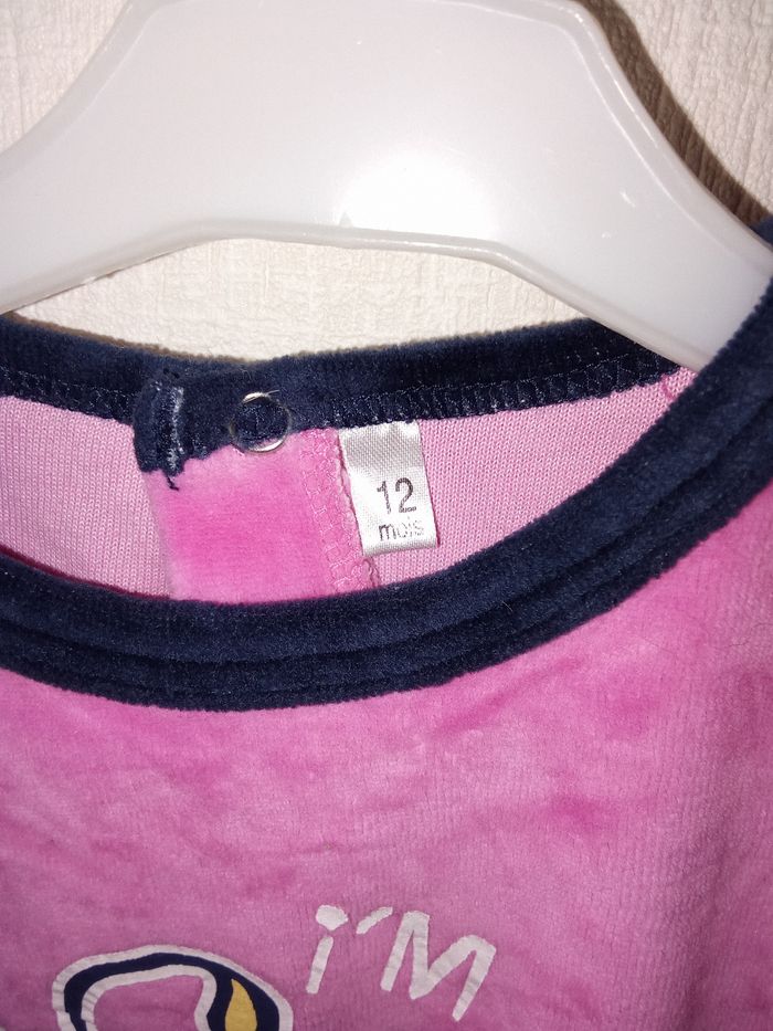Pyjama bébé fille,  2 pièce velour, hiver en 12 mois marine, rose, motif - photo numéro 2