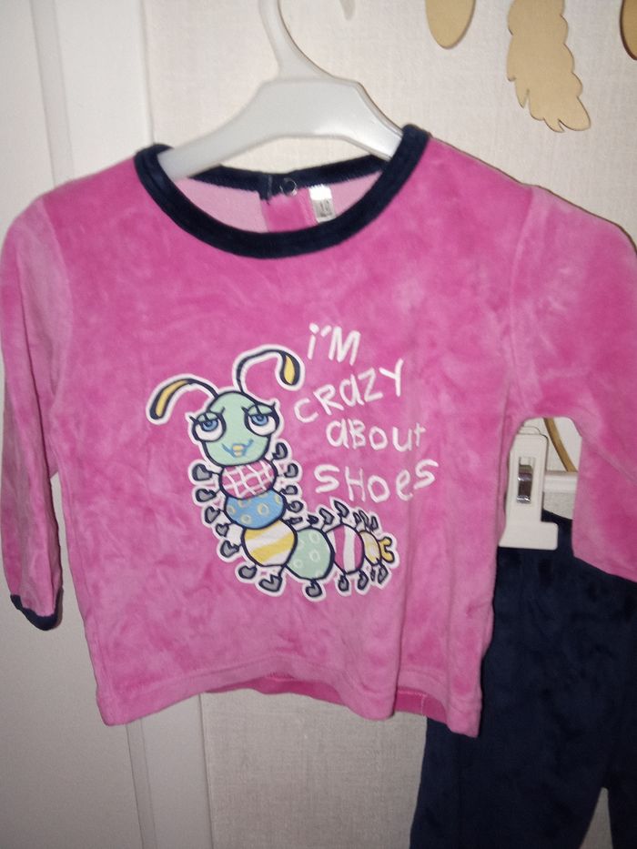 pyjama hiver bébé fille en 12 mois velour en 2 piece composé d'un haut rose Motif chenille et son pantalon couleur marine. Pas de marque 📌 À noter uN leger défaut sur le flocage Bon état général mm si porté. De nombreux autres ensembles bébé fille mm taille également à vendre ds mon dressing et réduction activée