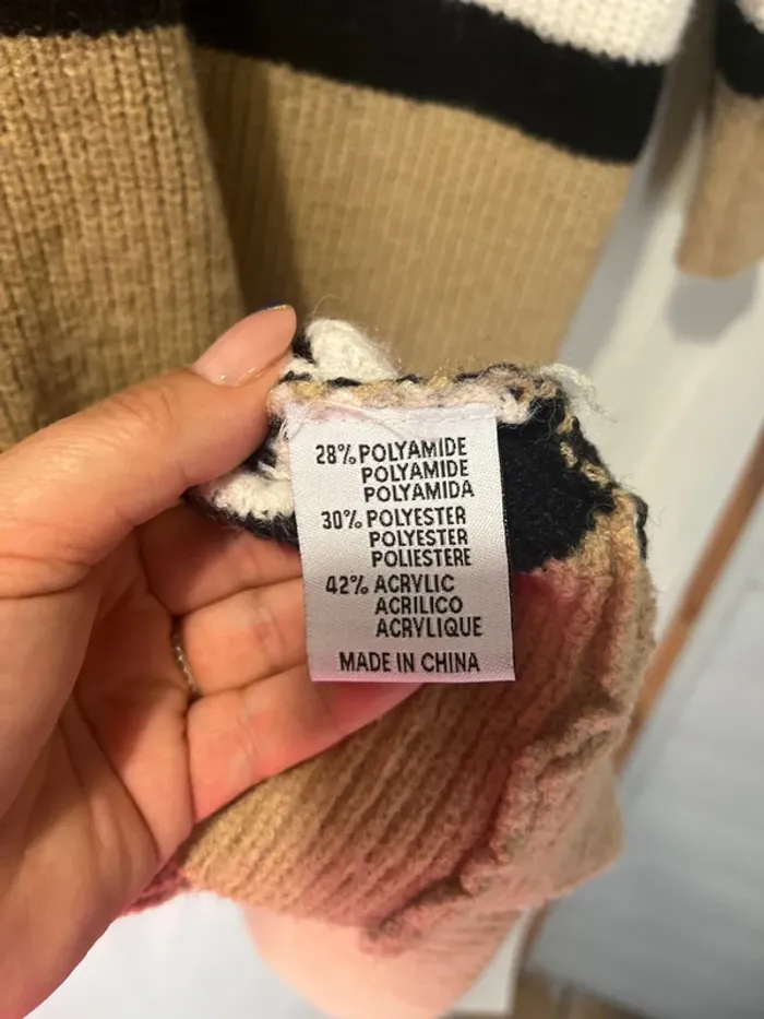 Robe pull Beige noire blanche et rouge Taille unique convient au 38 jusqu’au 44 Aisselle à aisselle 55 cm Longueur 112 cm
