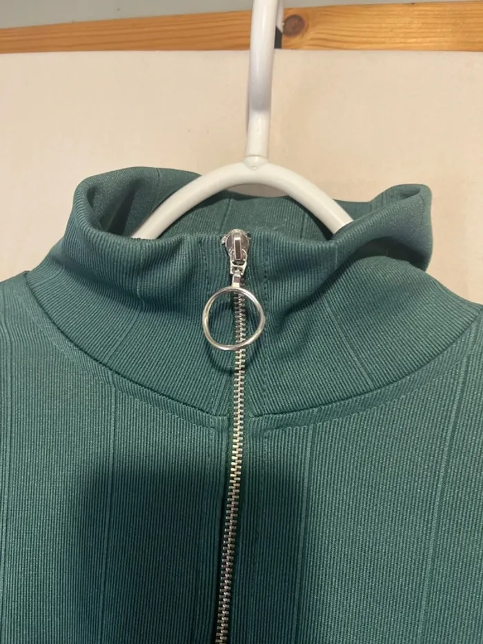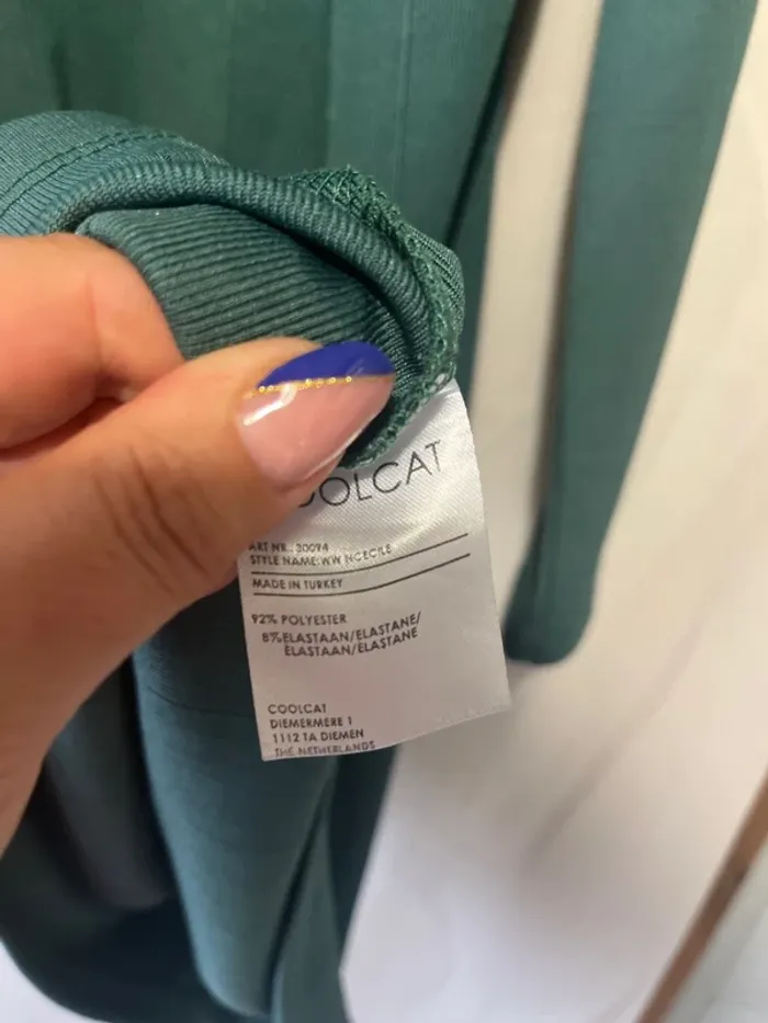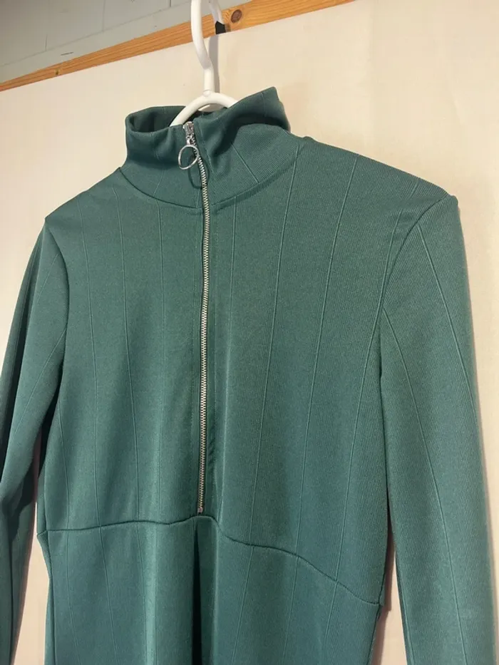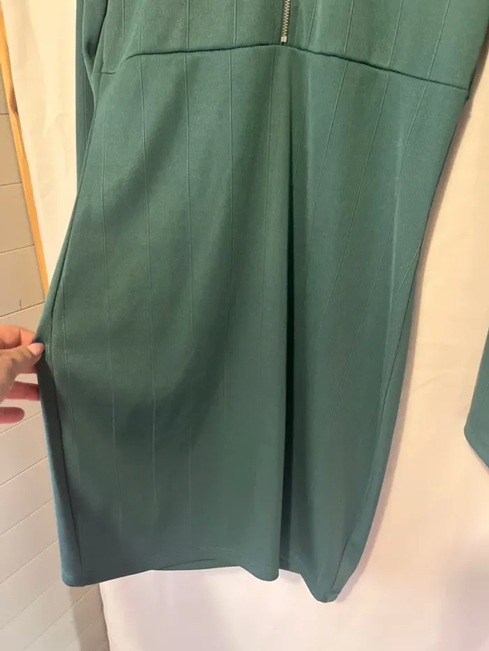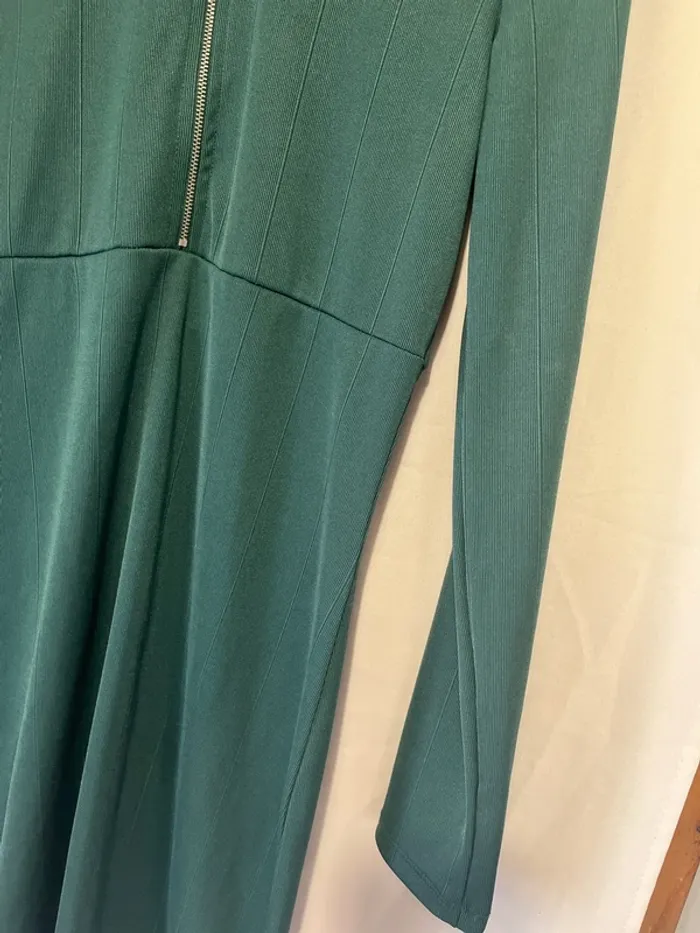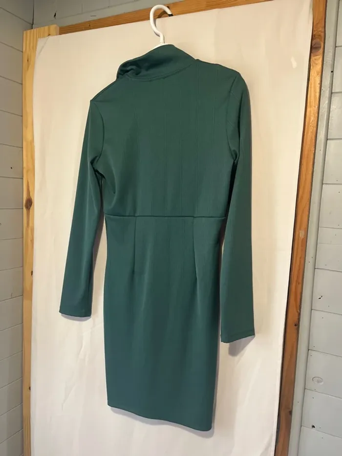Robe verte Manches longues Col roulé Fermeture Taille L Aisselle à aisselle 48 cm Longueur 94 cm Taille 42 cm