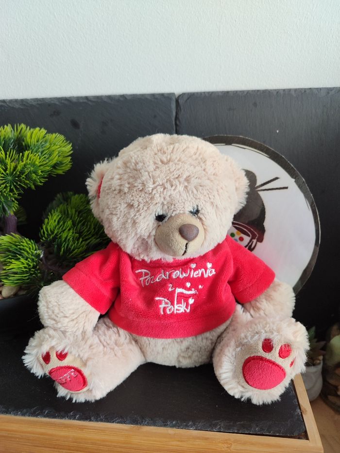 peluche Plush ours bear marron rouge pordrowienia polski beppe pull Poland Pe269 - photo numéro 1