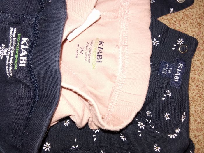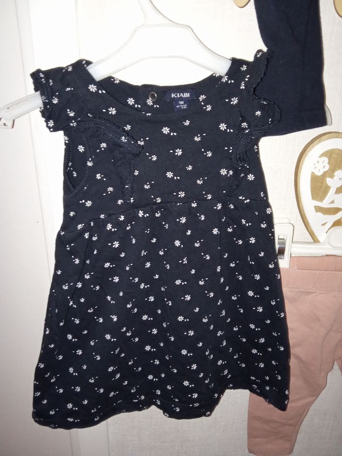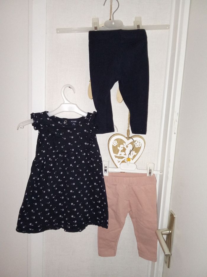 Lot de vts bébé fille Kiabi en 9 Mois, mi saison été, robe et leggins, marine, rose perle