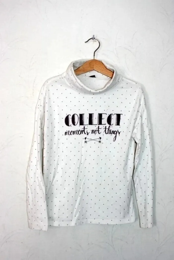 Sous pull marque Kiabi, un coup de stylo au dessus de l'écriture + plusieurs tâches sur les manches cf photo (n'ai pas essayé de détâcher), taille 8 ans (115g)