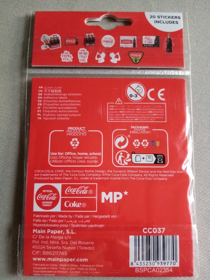 Pack de 20 étiquettes autocollantes Coca-Cola Sous emballage