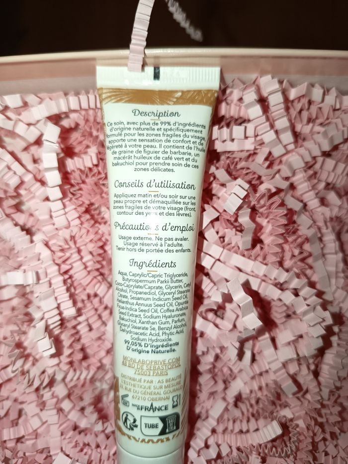 Formulé avec 99% d’ingrédients d’origine naturelle, il est idéal pour prendre soin des zones fragiles de votre visage telles que le