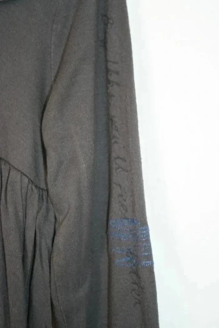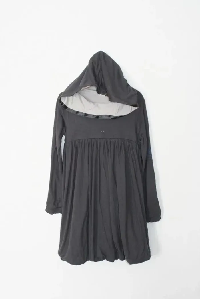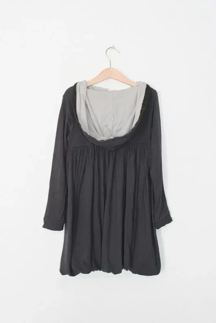 Tunique boule doublée avec col capuche évasé gris foncé marque Ikks taille 8 ans, plusieurs petits trous cf photos, 390g
