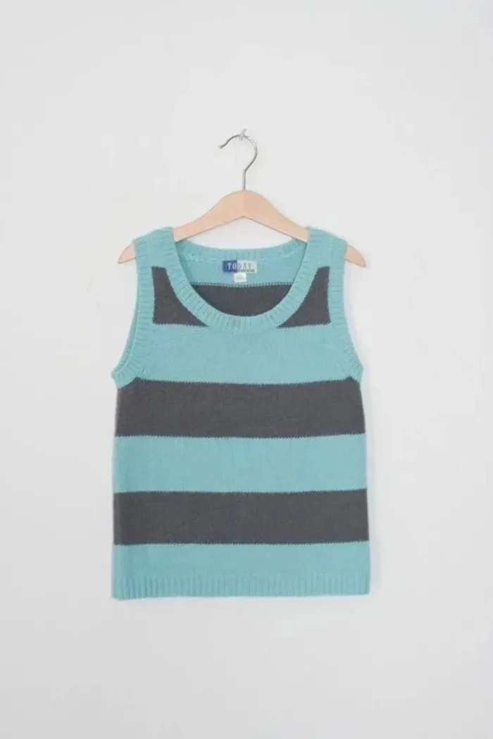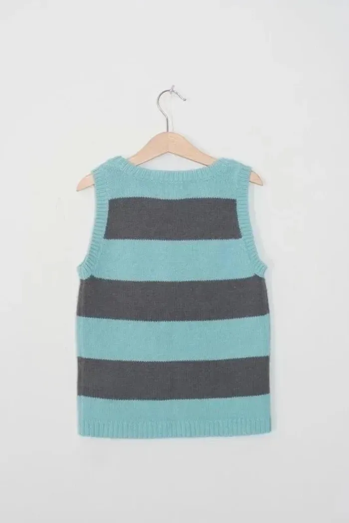 Pull sans manche marque Today par Vert Baudet, taille 8 ans, petite tâche au niveau du col cf photo, 85% acrylique + 15 % laine, 140g