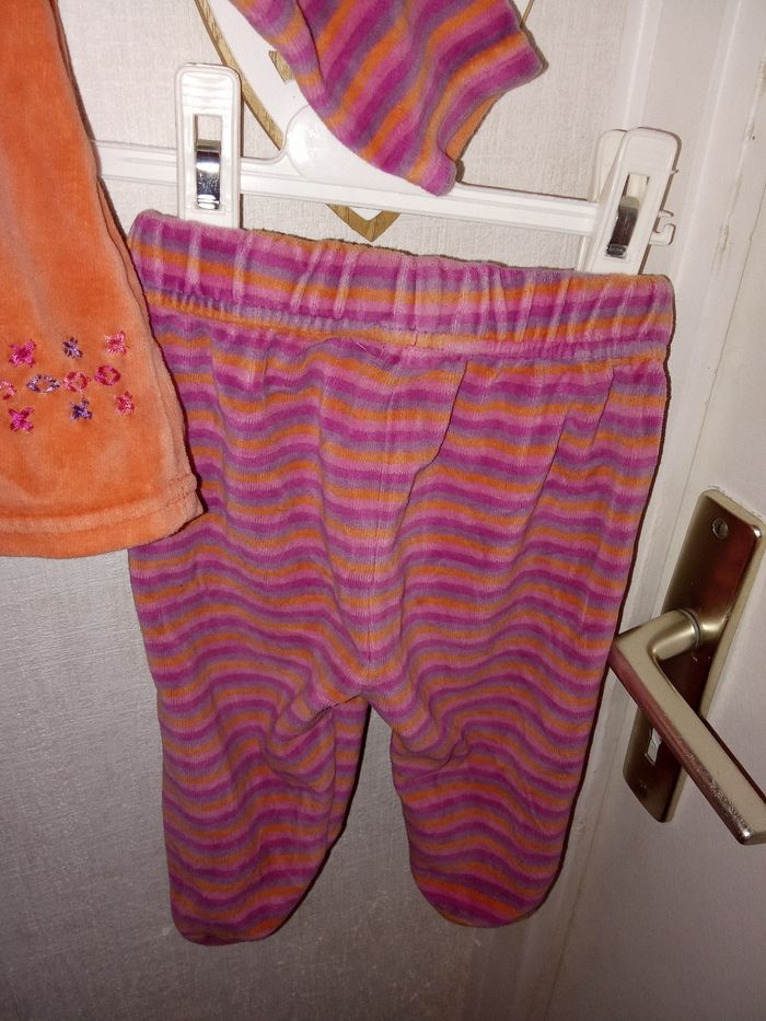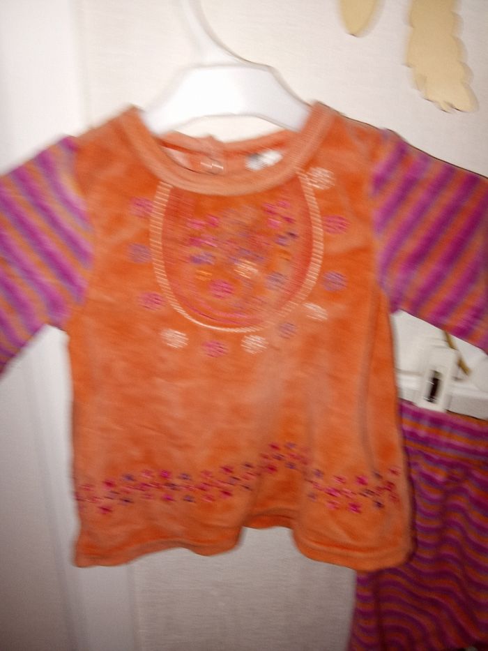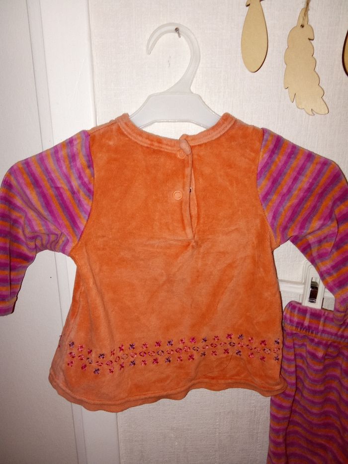Pyjama 2 pièces marque orchestra en 6 mois couleur orange et rose à rayures.