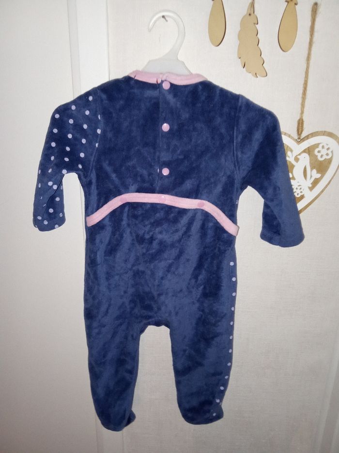 Pyjama bébé fille velour, hiver tissaia 9 mois, bleu, rose à pois - photo numéro 3