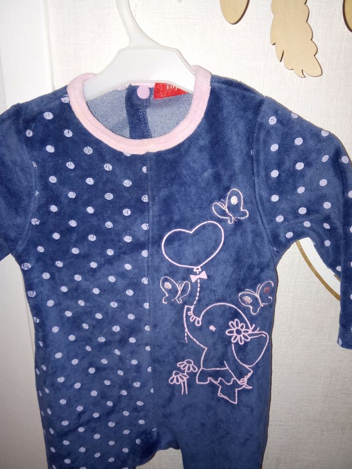 Pyjama bébé fille velour, hiver tissaia 9 mois, bleu, rose à pois - photo numéro 2