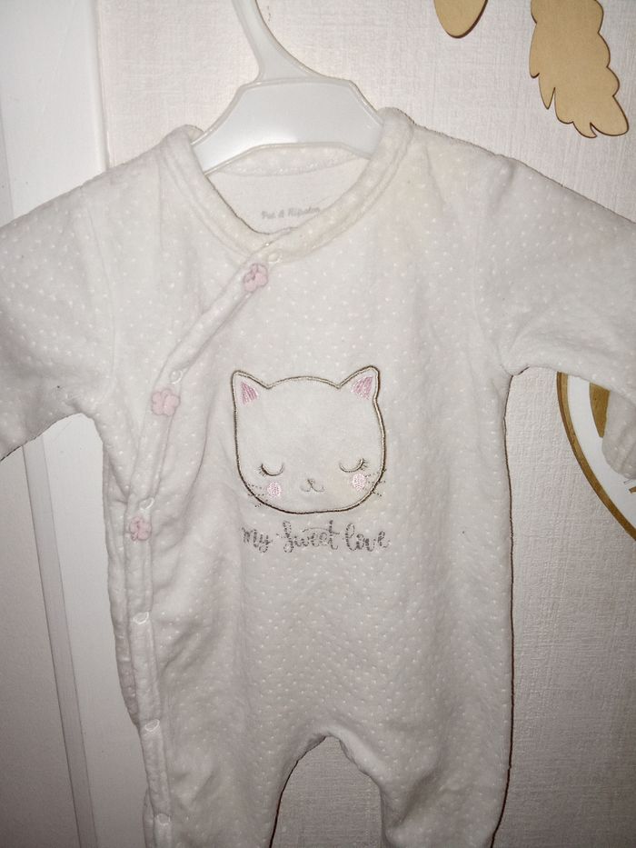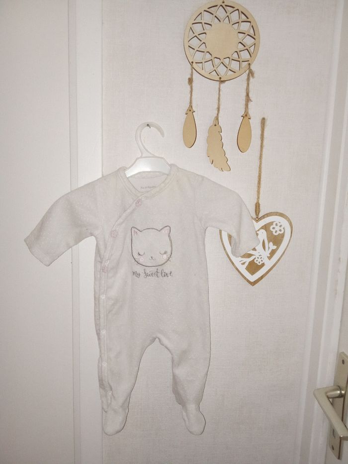 Pyjama bébé fille velour, hiver 1 mois blanc pat et ripaton