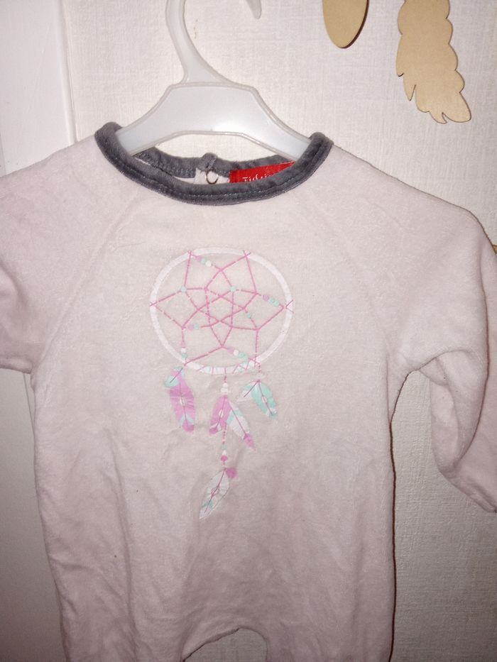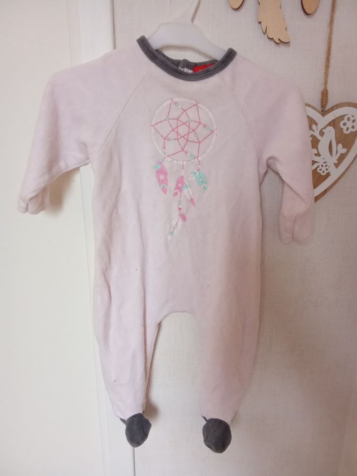 Pyjama bébé fille velour, hiver rose pâle gris 9 mois, tissaia motif