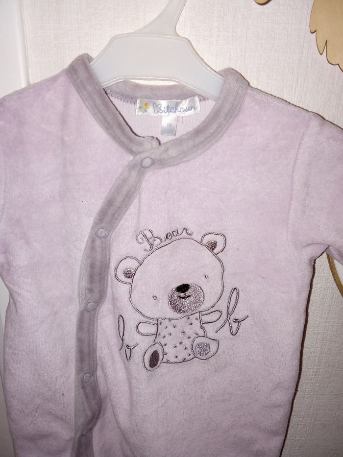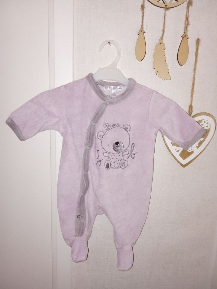 Pyjama bébé fille 1 mois velour hiver violine motif