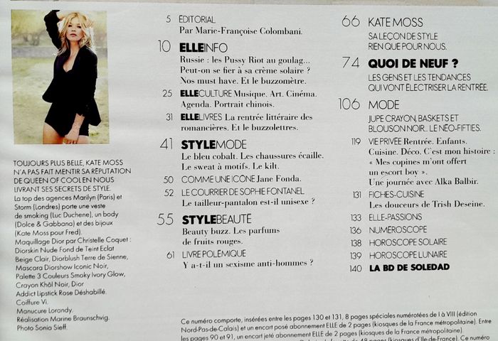 Magazine Elle n°3478 aout 2012 spécial Kate Moss