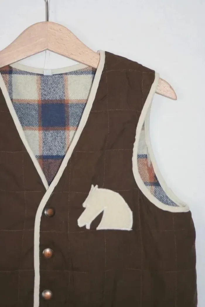 Gilet pour l'équitation chocolat, taille 8 ans, marque Robin Masters, légèrement décousu à l'aisselle gauche cf photo, 180g