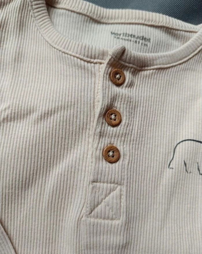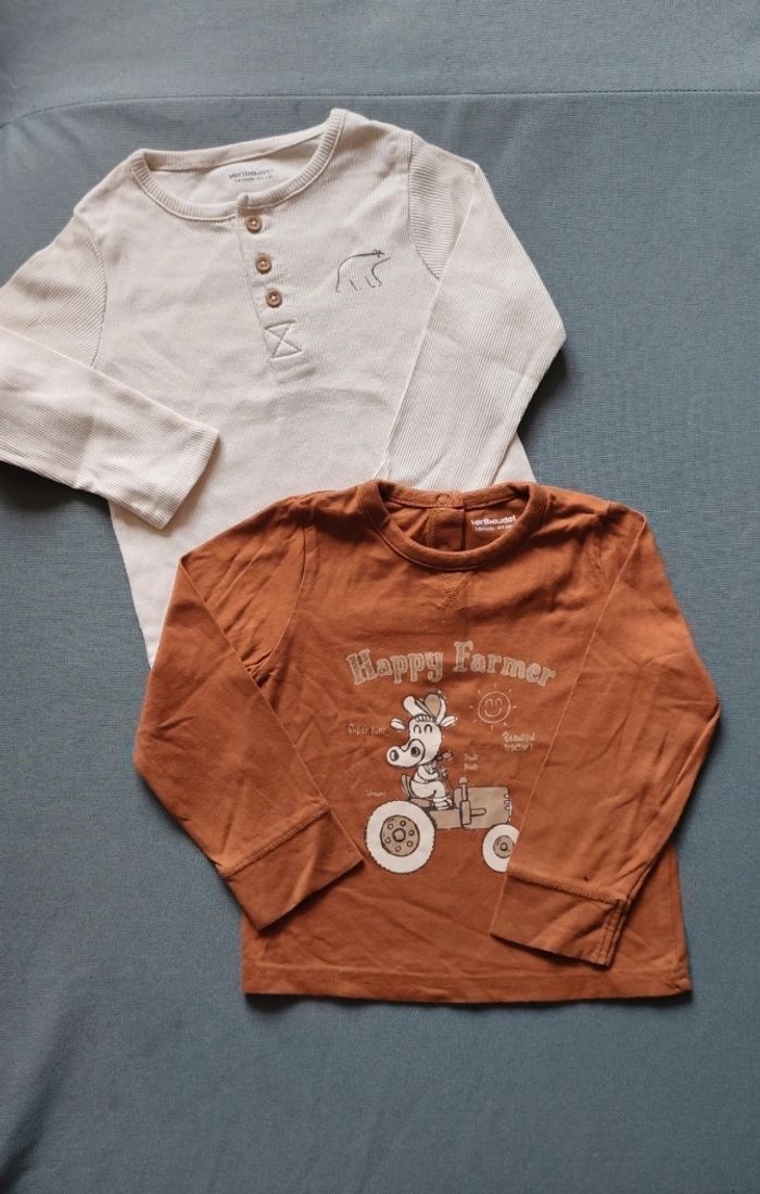 🧸Détail du vêtement 🧸 Lot 2 t-shirts manches longues. 1 crème côtelé et l'autre en coton. En parfait état. Taille 18 mois (81 cm)